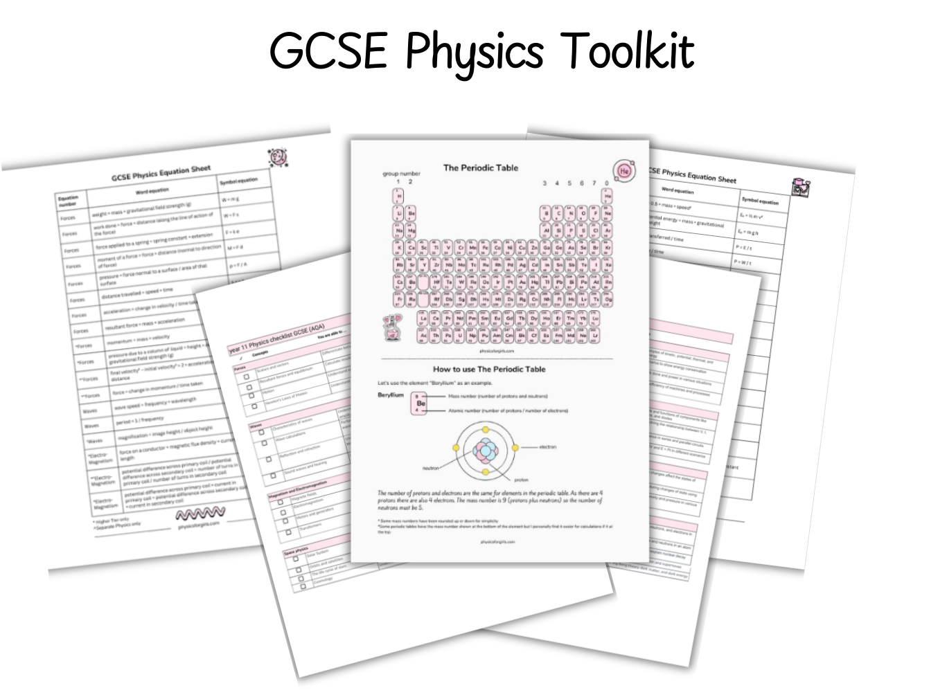 Download beautifully designed Physics resources — from equation sheets to checklists — made especially for girls studying GCSE Physics. Just enter your first name and email to unlock them all!